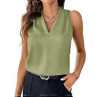 Womens Pleated Tank Tops V Neck Casual Sleeveless Blouses Vest Shirt Yellow green XL