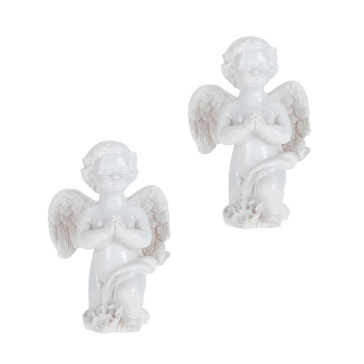 Sand Table Decoration Resin Angel Ornaments for Pray 2Pcs White Figurines