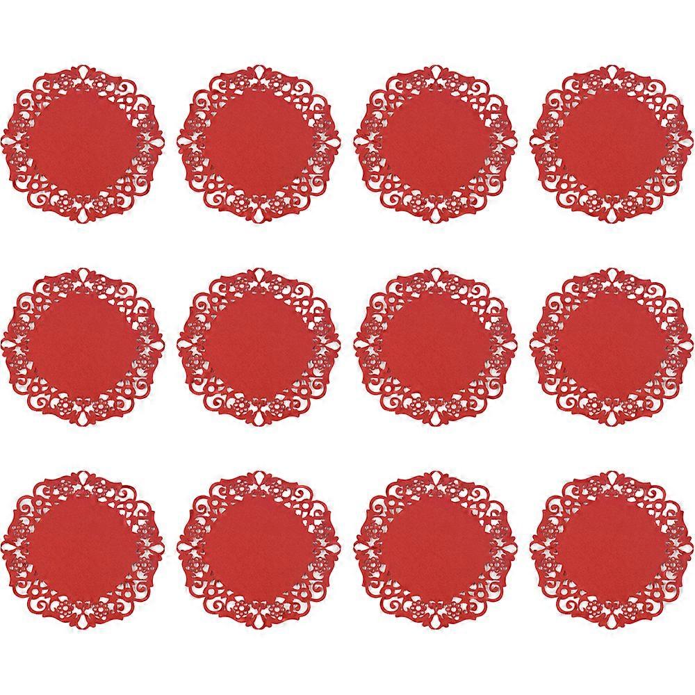 Table Decoration, Disposable Foil Lace Doilies, Red