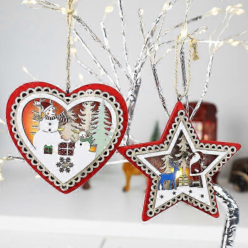 Christmas Tree Decorations for Wooden Handmade Luminous Hanging Ornaments