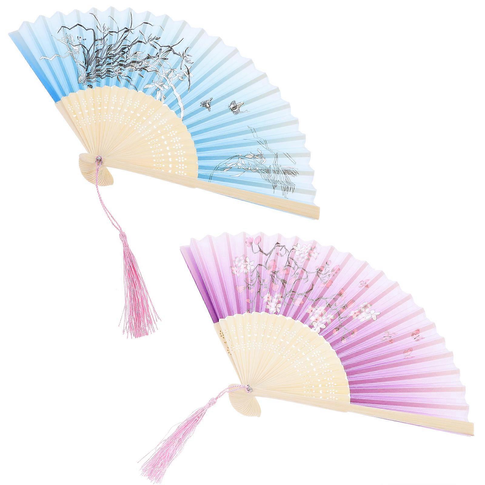 Delicate Folding Fan 2Pcs Chinese Style Dancing Accessory Assorted Color Dancing Fan Great For Summer Travel