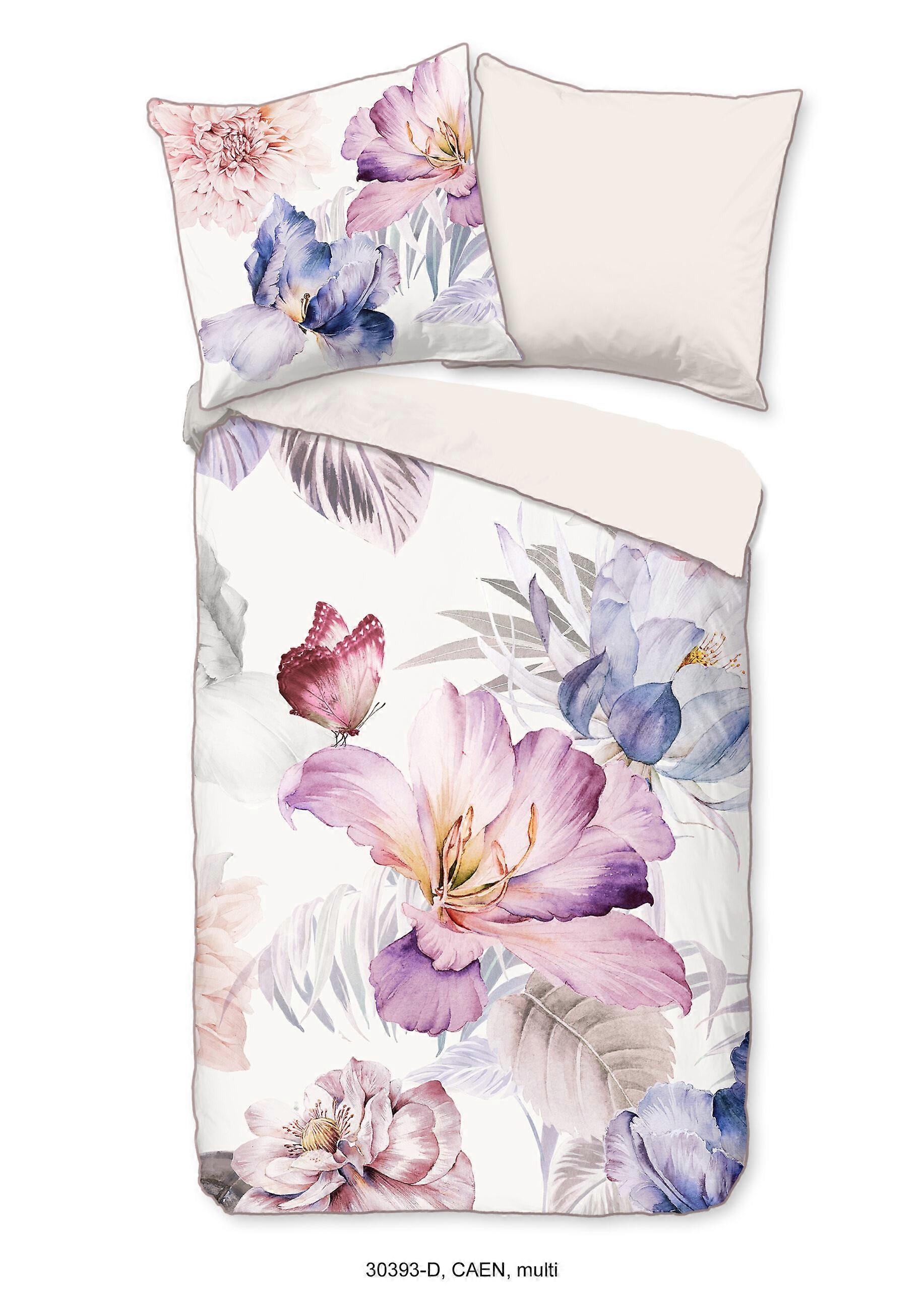 Descanso Dekbedovertrek "bloemen" - Multi - (155x220 cm) - Biologisch Katoen satijn