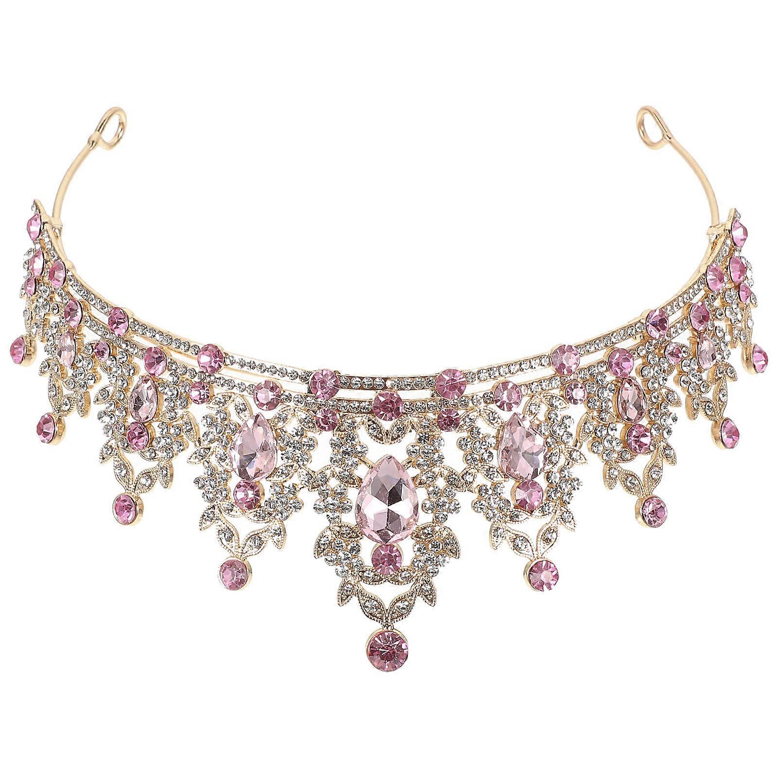 Crown-Shaped Bride Tiara in Stunning Pink, Charming Accessory for Women's Occasions like Weddings or Performances, 1 Piece