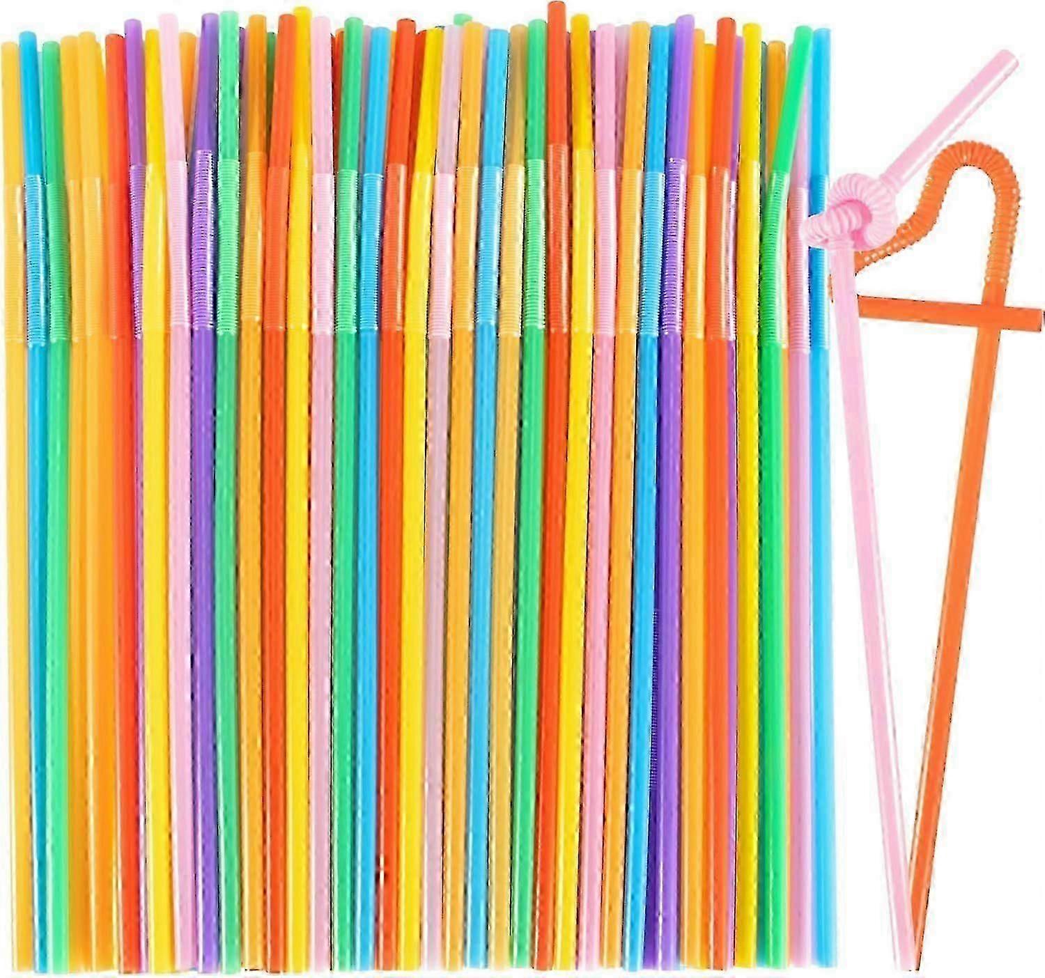 Disposable Plastic Drinking Straws - 100PCS Flexible Drinking Straws Long