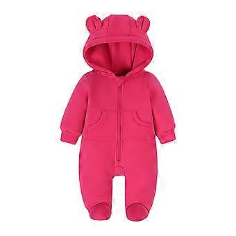 Newborn Baby Plain Jumpsuit Boys Girls Cute Bear Hoodie Zipper Long Sleeve Cotton Bodysuit Fall Winter Warm Romper Red 6-9 Months