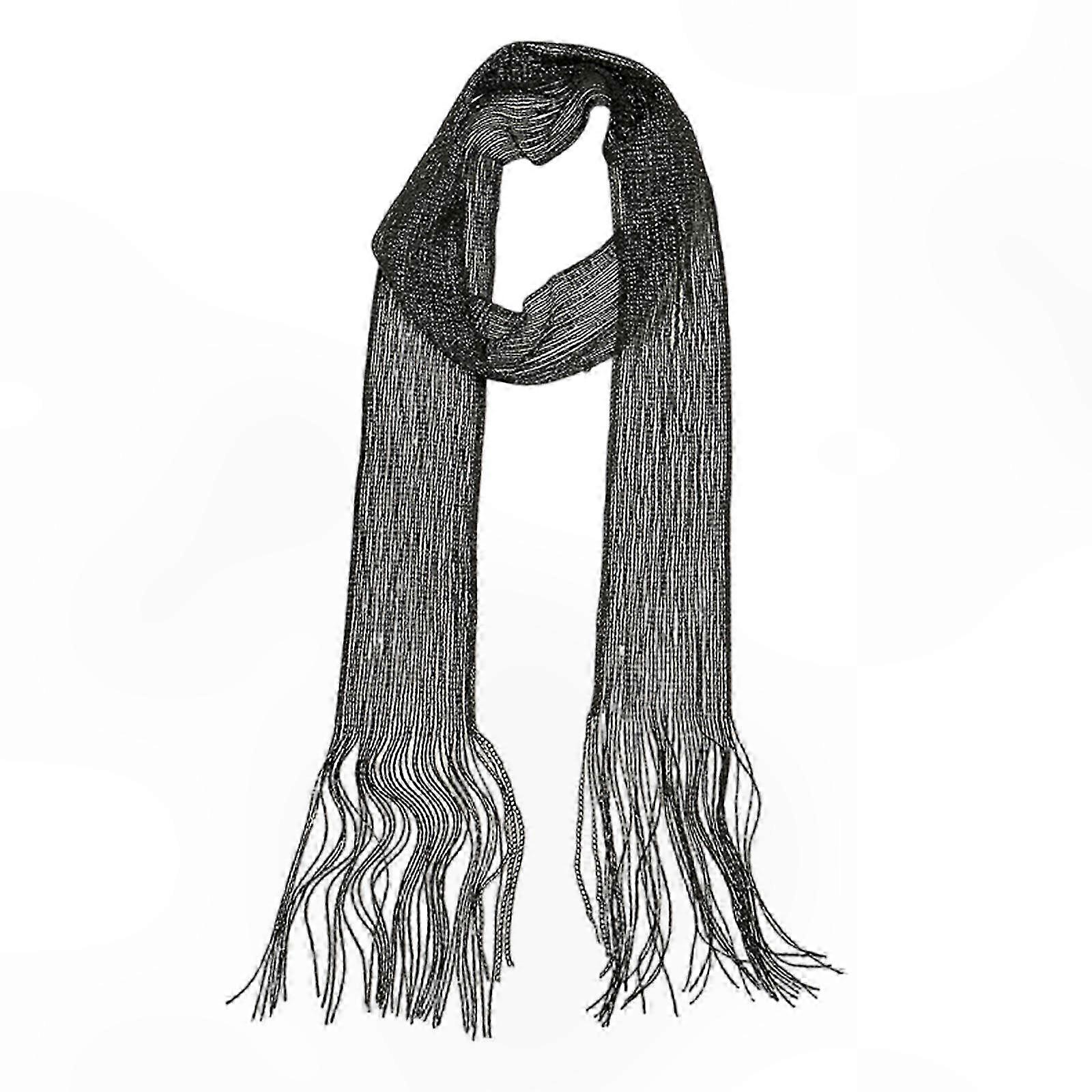 Long Thin Fringed Shimmering Scarf for Women Formal Dinner Party Fashion Accessory Silver