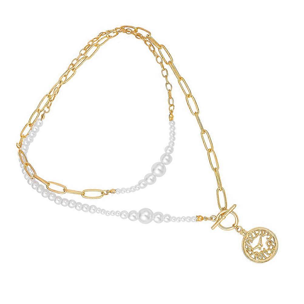 Elegant Double Layer Pearl Chain Necklace for Women Assorted Color Alloy and ABS Pearl Material