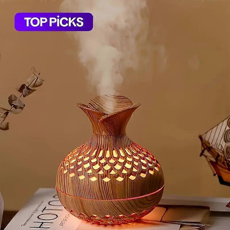 Elegant Woodgrain Aroma Diffuser with 7-Color LED Lights, USB-Powered Room Humidifier for Home Office Car, Stylish Desktop Design, Perfect G