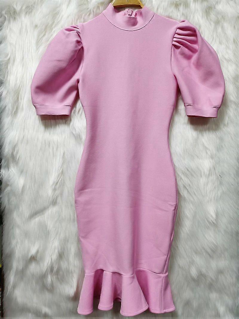 Elegant Commuter Bandage Dress, High-Neck Puffed Sleeves, Fishtail Fitted Evening Dress