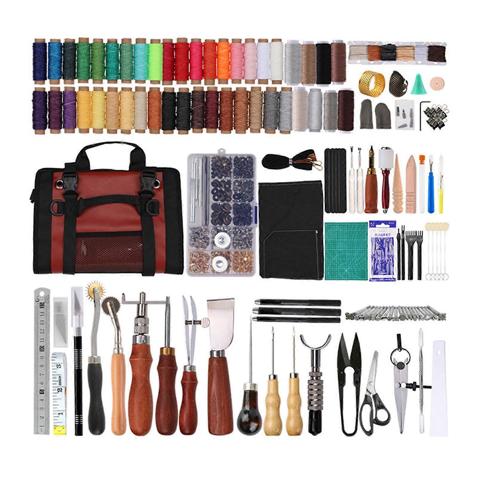 Leather Craft Repair Tool Set Leather Working Tool Leather Craft Tools Hand Stitching Tool Set with Thread Groover Awls