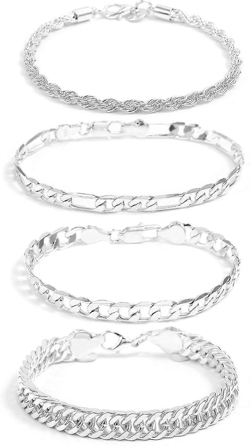 4pcs Silver Bracelets Set Solid 925 Sterling Silver Bracelet