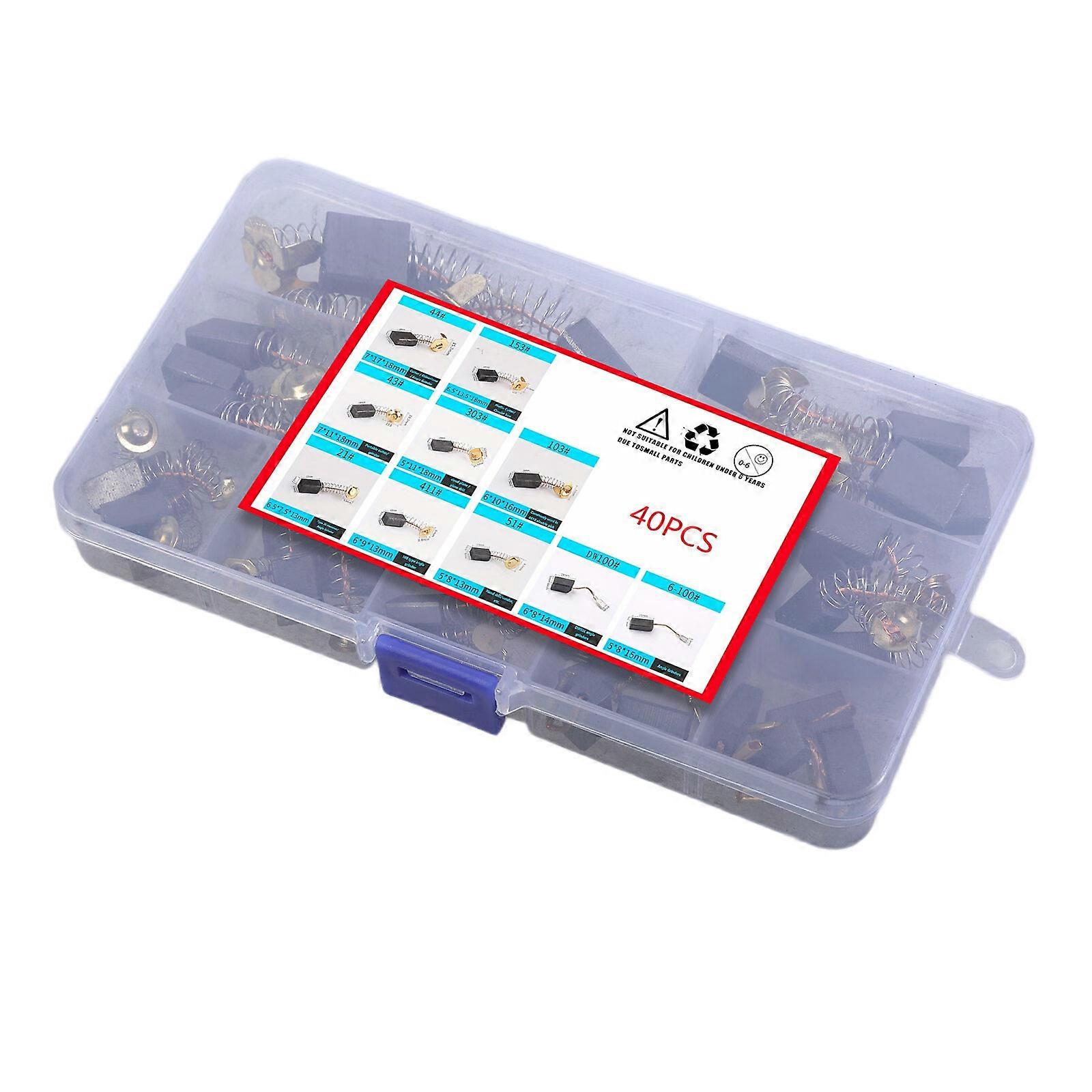 40Pcs Electric Motor Carbon Brushes Set with 10 Different Multiple Sizes for Comprehensive Power Tool Repairs