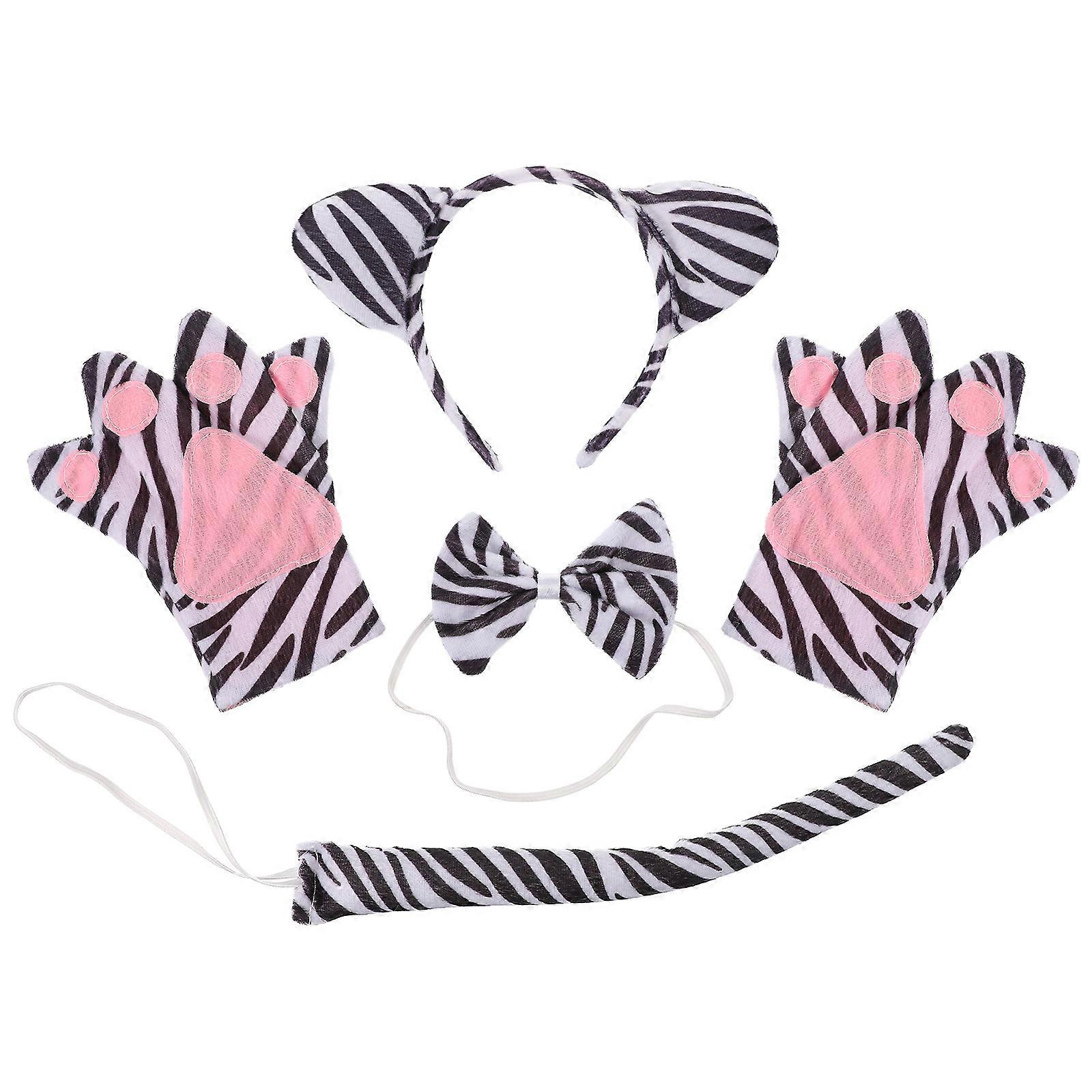 Animal Performance Prop Bowknot Tie Tail Headband Gloves Set 5Pcs