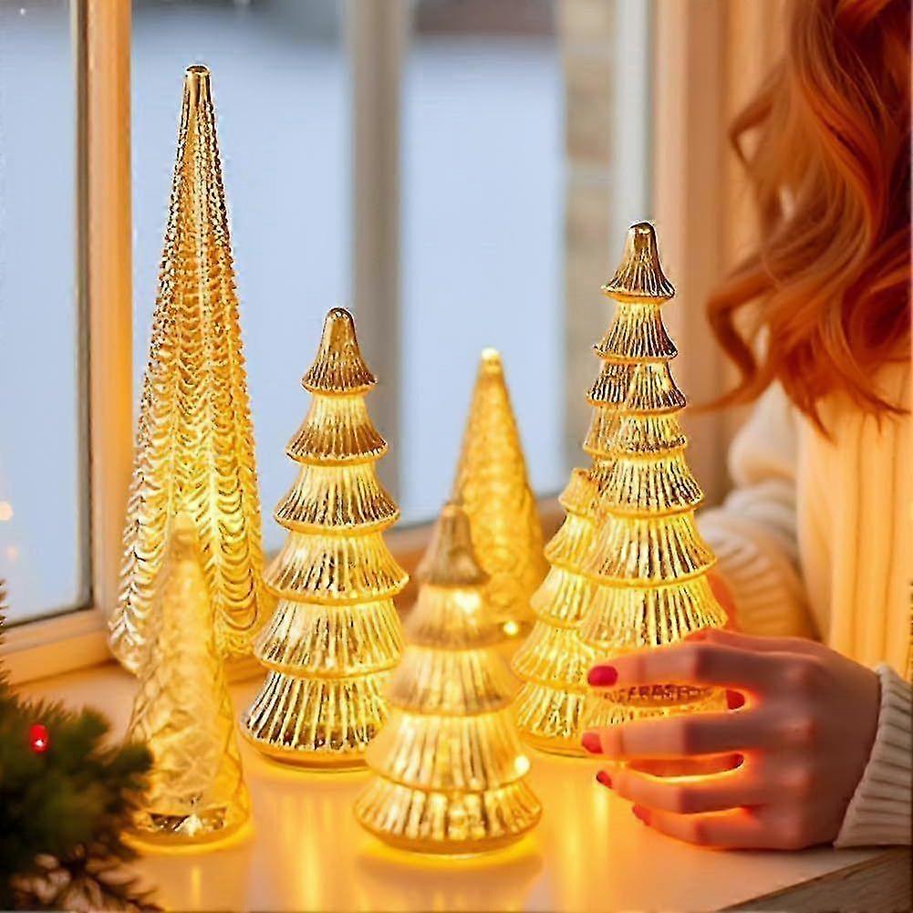 Features: Set Of 5 Illuminated Mercury Glass Christmas Tree: Our Mercury Christmas tree texture details add a delicate touch to your holiday decoration Five Tree Set : This set includes five Christmas trees, suitable for styling together or separately on fireplaces, tables, and shelves to create a festive atmosphere Convenient Function: Each glowing Christmas tree can provide enchanting radiance. Multi functional holiday decoration: These glowing Christmas trees are an ideal choice for decoration, enhancing indoor Christmas displays whether in the living room, dining area, or as part of a comfortable fireplace environment Ideal Choice: This sparkling Christmas tree set is an ideal choice for holidays, adding elegance and charm to Christmas celebrations and creating precious memories for family and guests Notice: 1.Actual color may be slightly different from the image due to different light effect 2.Please allow 1-3cm deviation due to manual measurement Description: Material: Resin Package List: Set of 5 Pre-Lit Glass Xmas Tree Ornament