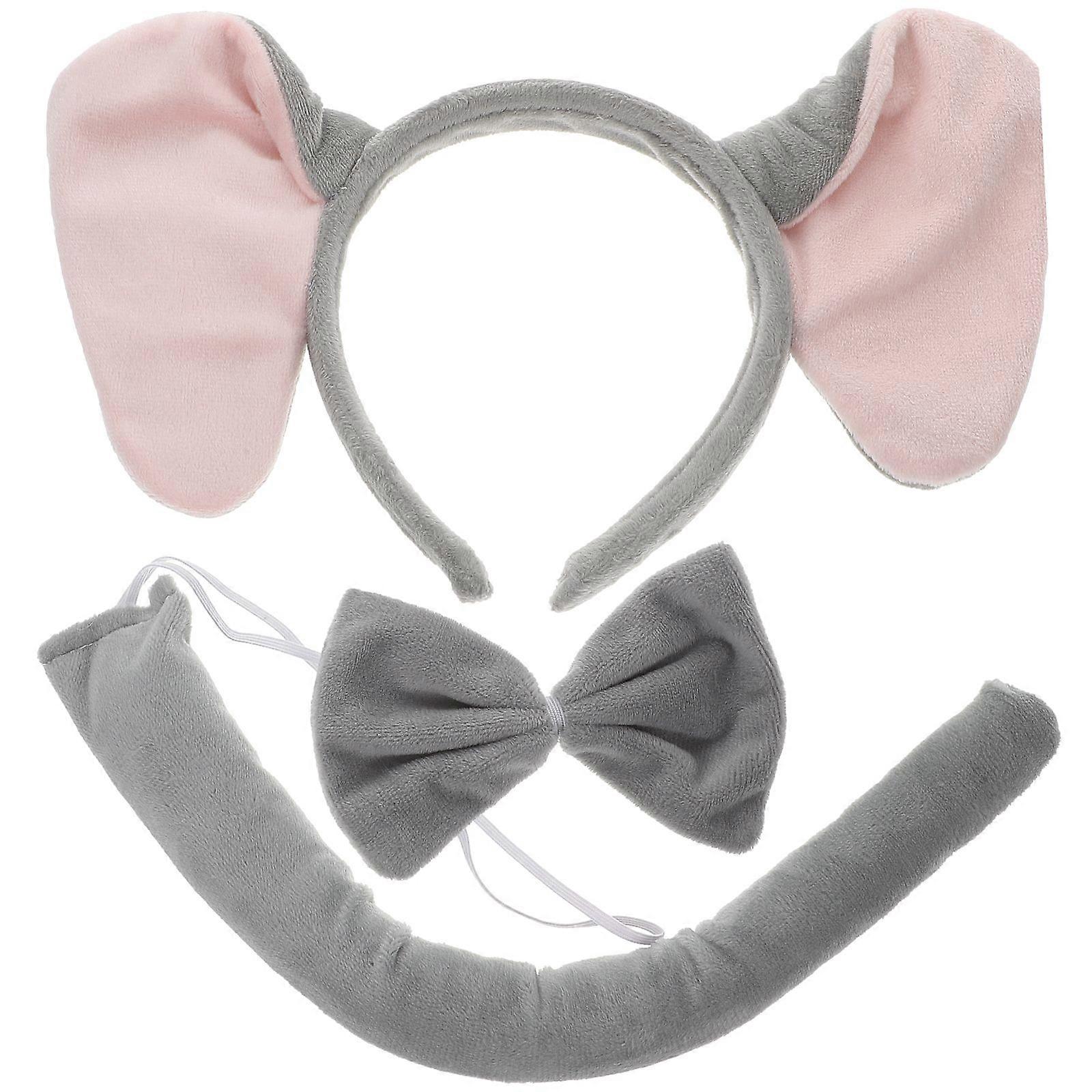 1 Set Animals Costume Prop Set Elephant Ear Headband Bow Tie And Tail Dress Up Accessories Grey