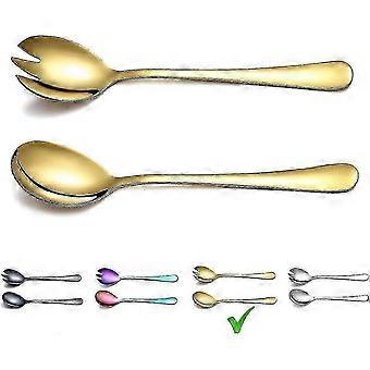 Stainless Serving Set With Titanium Colorful Plating, Salad Servers, Salad Fork, 2pcs(gold) Steel Salad