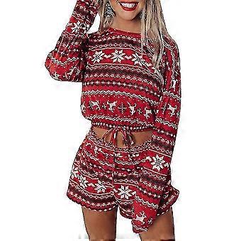 Women's Christmas Printed Pajama Set - Cropped Tops & Shorts Outfit