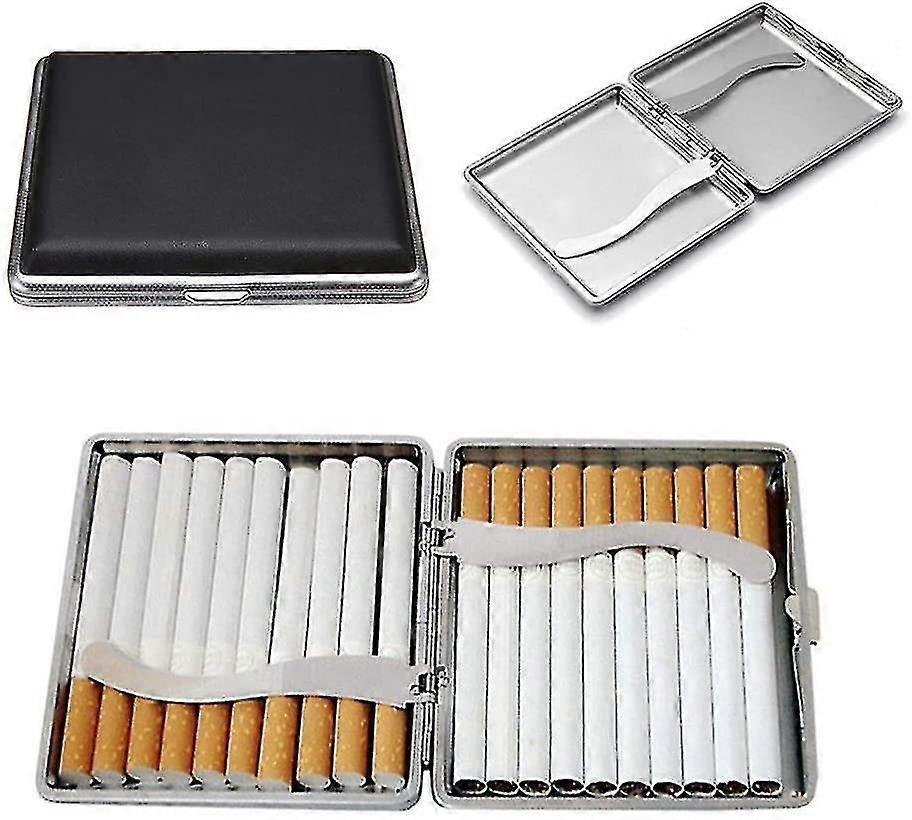 2pcs Cigarette Case Made Of Light Metal With Black Imitation Leather