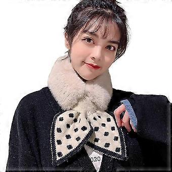 Women Autumn Winter Scarf Dot Print Patchwork Color Plush Shawl Knitting Cross Scarf Collar Thick