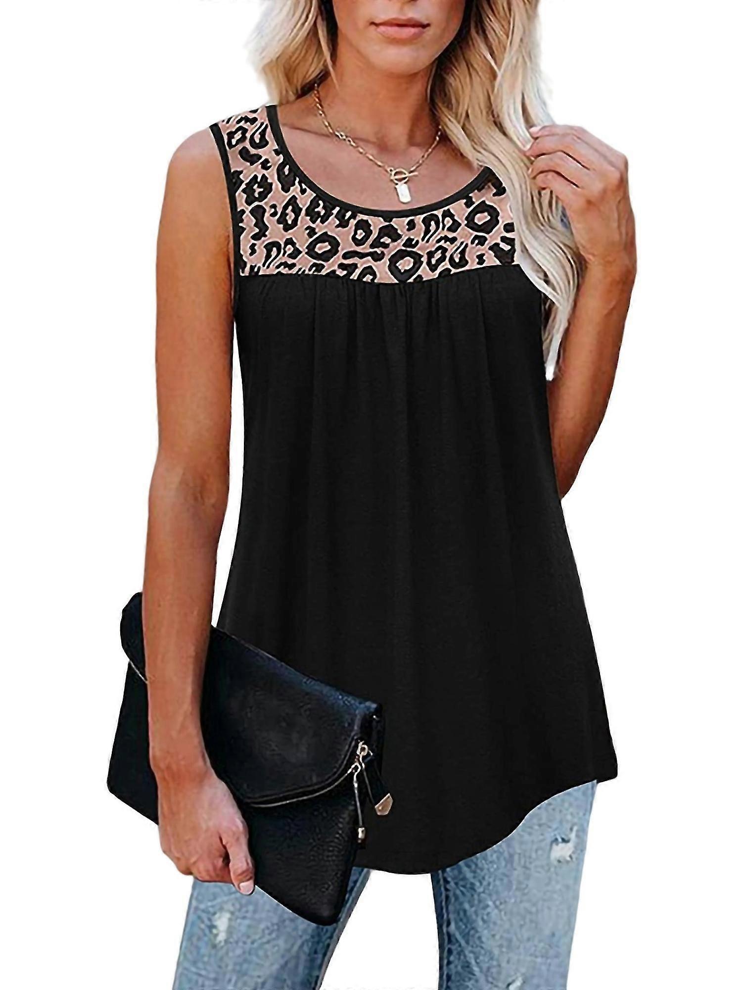 Women Bohemian Tank Tops Leopard Print Beach Loose Stitched Tunic Blouse