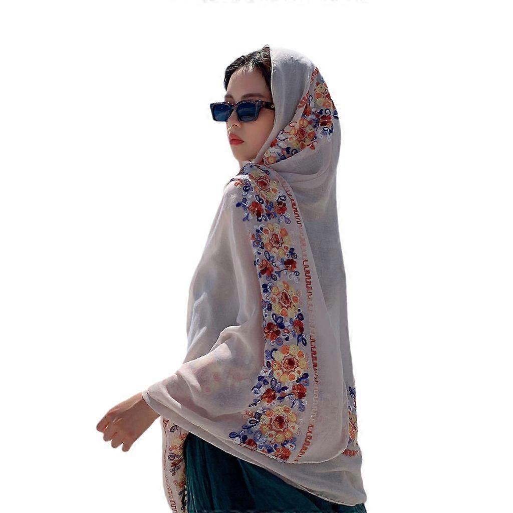 Womens Embroidery Shawl Scarf Wrap Scarves Ethnic Style Floral Shawl Long Scarf
