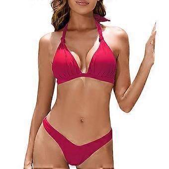 Women Solid Color Swimsuits Two Pcs Swimwear Push Up Bathing Suit Ladies Swimming Costume Set for Beachwear Red S