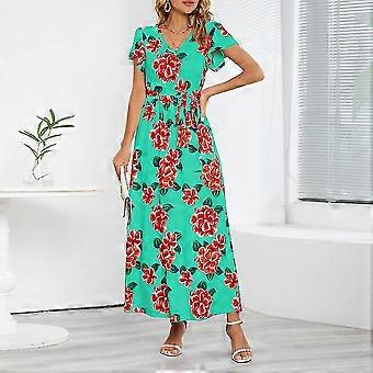 Femmes Été Manches Courtes V Col Maxi Lâche Robe Maxi Décontractée Robes longues