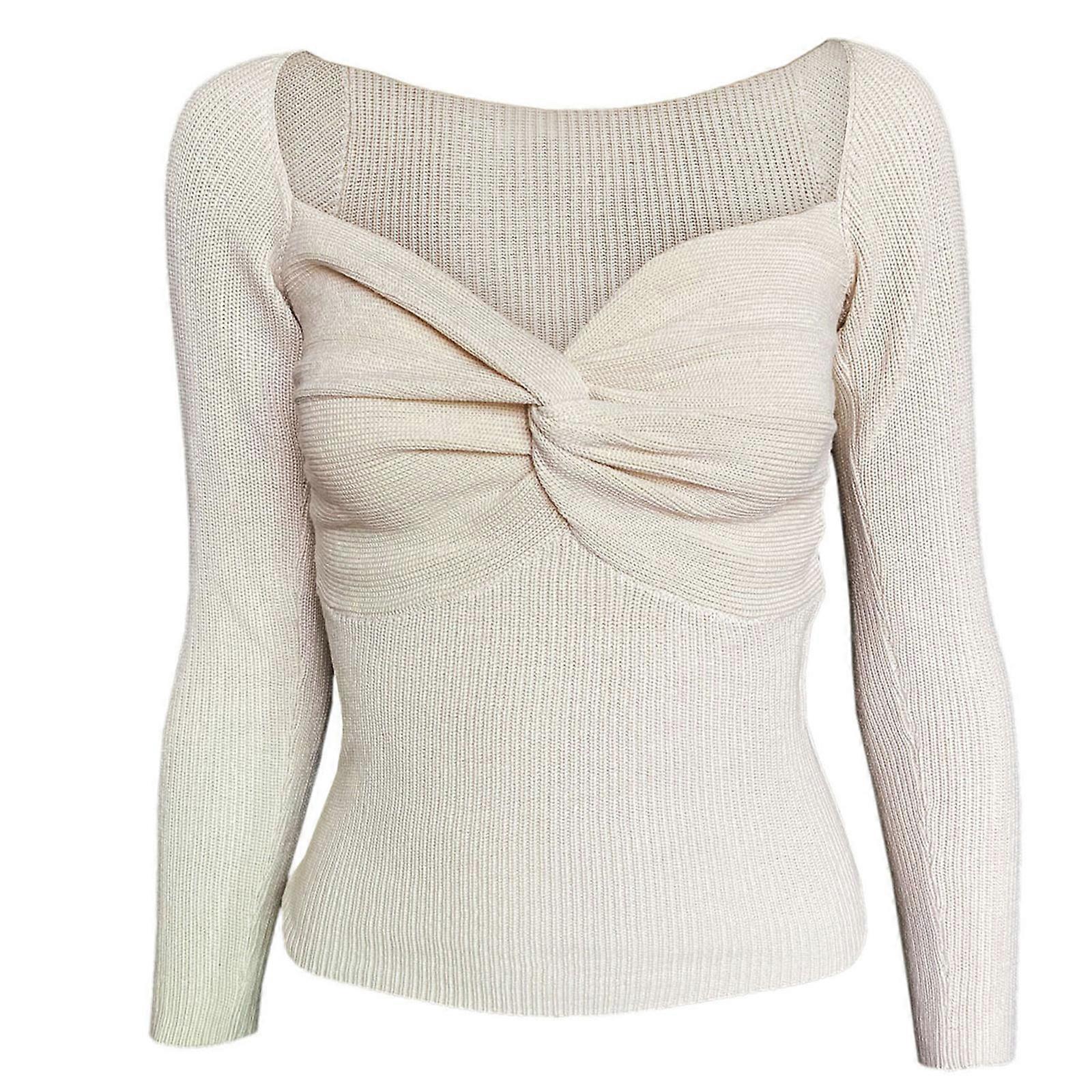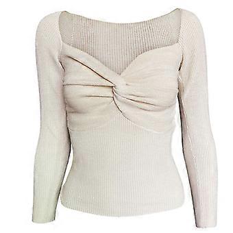 Women Fashion Knit Blouse All-match Solid for Cross on Chest Square Neck Long Sleeve Casual Shirt Autumn Evening Party T apricot XL