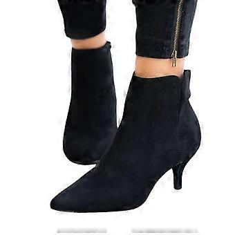 Femmes Zip Ankle Booties Low Kitten Heel Pointed Toe Chaussures