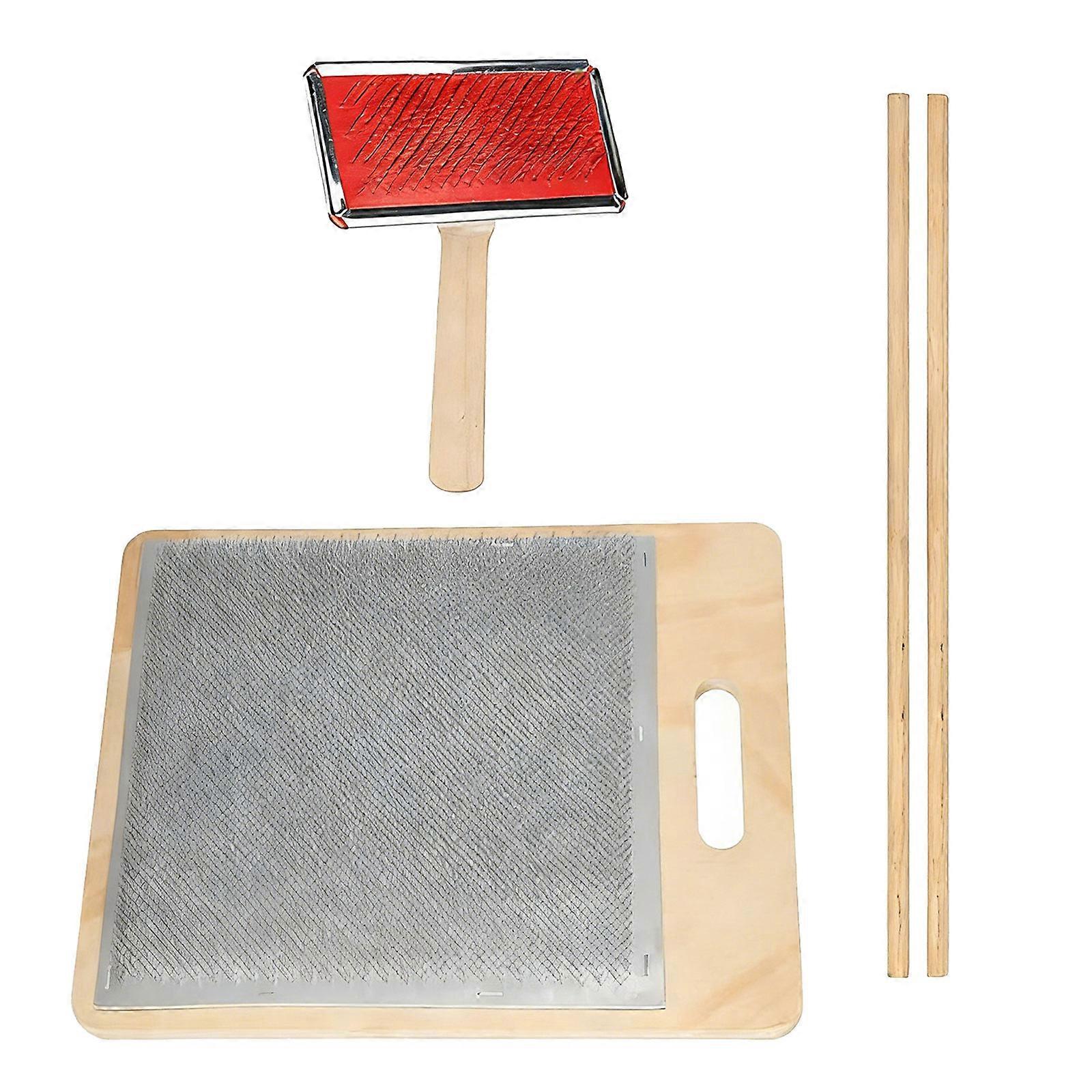 Features: Efficient Fiber Processing: This wool blending board and fiber carding brush set is crafted from premium wood and stalk components, providing consistent use and pleasant handling. Perfect for home craft working with wool preparation and fiber blending tasks. Built with natural wood and stalk factors, this set delivers superior grip while being environmentally considerate. Lightweight and resistant to wear, excellent for prolonged sewing and crafting activities. Features 3 different settings to suit various felting methods and folds conveniently for tabletop applications, increasing adaptability for multiple fiber crafts. The tools have a space efficient design for easy organization, taking up minimal area to preserve neat work areas in limited spaces or hobby rooms. Suitable for processing wool as well as other natural textiles like cotton and linen, serving craft of all skill levels from beginners to experienced makers. Specifications: Materials: Wood Size: 26.92x32x3.05cm/10.6x12.6x1.2inch, Length 40.13x1.02cm/15.8x0.4inch, Brush Length 11.2cm/4.41inch Package Includes: 1pc Fiber Carding Brush Set note: 1.Please allow 1-2cm errors due to manual measurement, making sure that you will not mind before order. 2.Due to the differences between different monitors, the picture may not reflect the actual color.