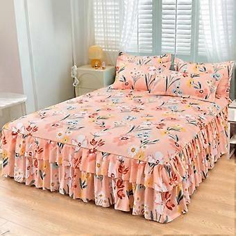 Floral Print Ruffled Edge Bed Skirt Set, 2/3 Counts Including 1 Count Bed Skirt & 1/2 Counts Pillowcase without Filler, Soft Comfortable Bre