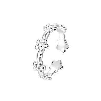 This women's forest-style flower ring features an open adjustable design, presenting a simple and versatile look suitable for daily wear and various outfits. Material: Silver. Treatment Process: Electroplating. Color as shown.