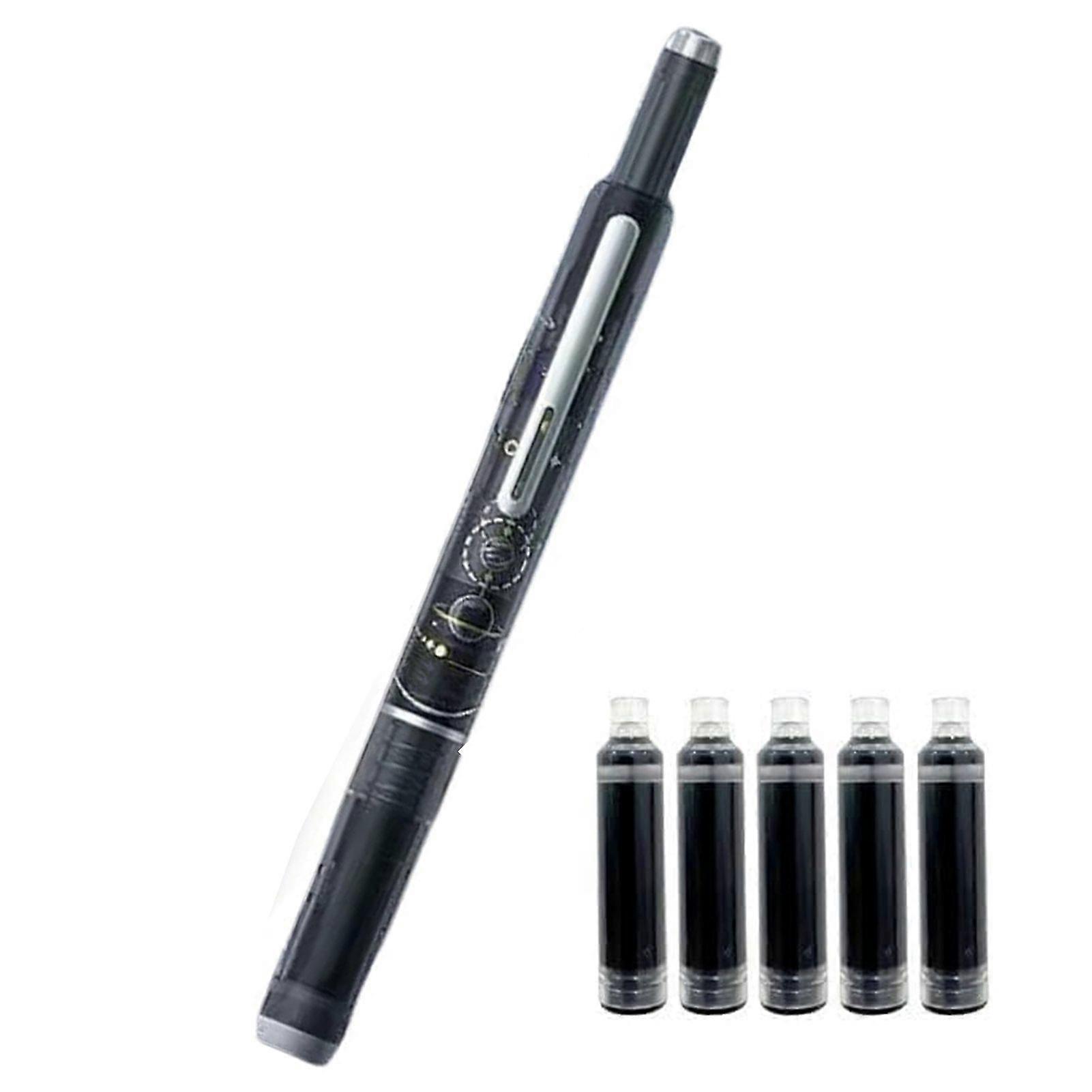 Fountain Pen Retractable 0.38mm Black Ink Fine Nib Pen Set with Transparent Barrel And 5 Ink Cartridges for Calligraphy Journaling Doodling Sketching