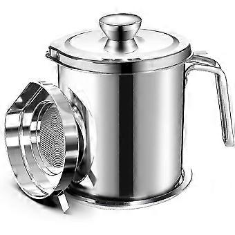 Pot de tamis d’huile Fat Jug Récipient en conserve d’approvisionnement en acier inoxydable avec tamis à mailles fines adapté au stockage de l’huile de friture et de la graisse alimentaire