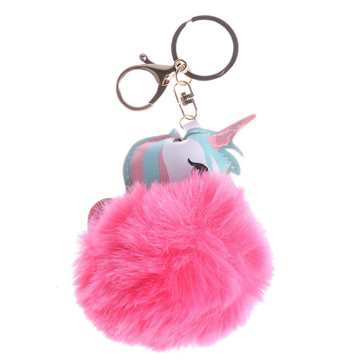 Funny Keyring Unicorn Hair Ball Key Chain for Hanging Use 3Pcs Pink