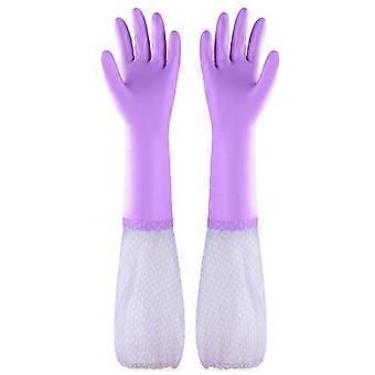 Gants de nettoyage de vaisselle réutilisables sans latex, manchette longue, doublure en coton, gants de cuisine (violet, moyen)