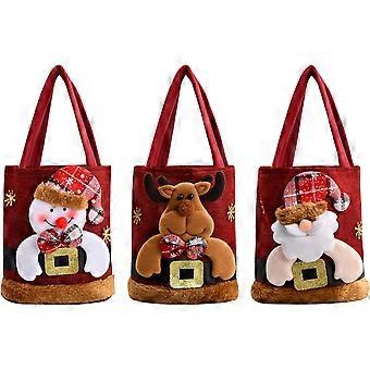 AURA 3Pcs Sacs de Noël 20x20cm Sacs de Noël, Vin Rouge Lin Note Favor Sacs, pour Noël Bonbons Cadeaux Cadeaux Emballage Aura