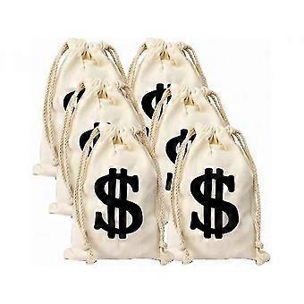 Sac à cordon en jute en toile de jute pour l’argent pièces de monnaie dés bijoux rangement - pochette bancaire réutilisable avec conception de signe de dollar