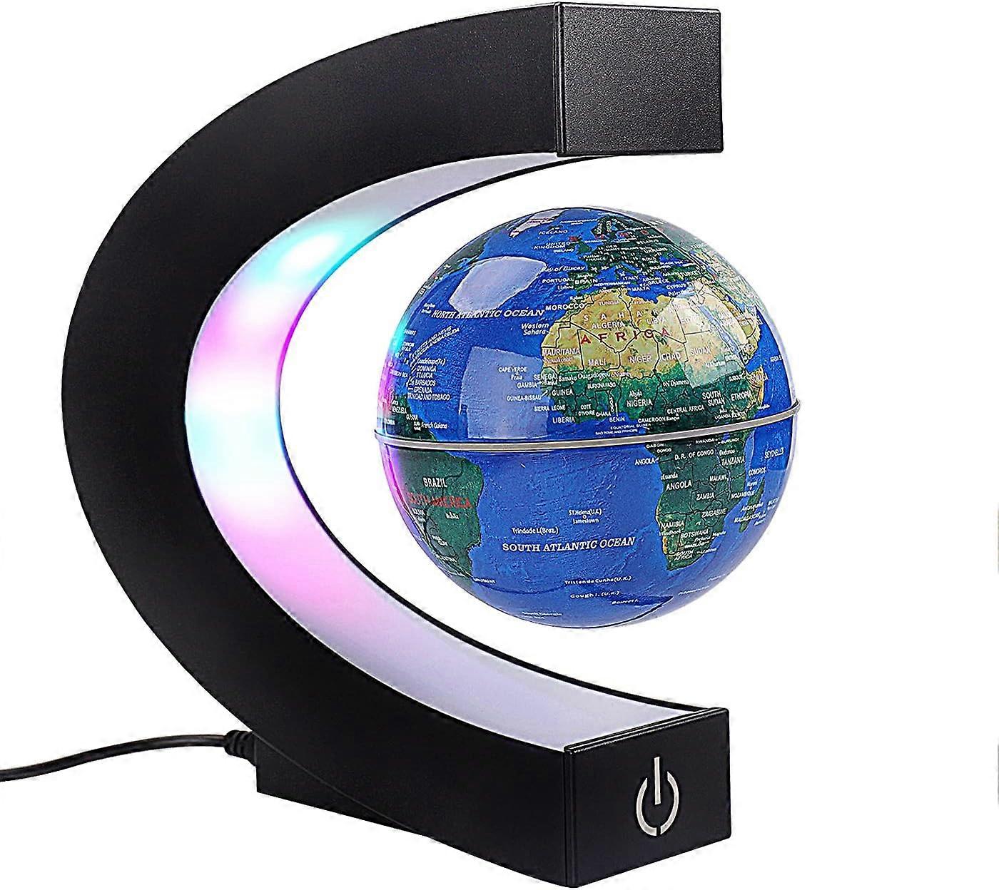 Magnetic Floating Globe with LED Lights - C Shape Maglev World Map Blue Home Office Desk Decor