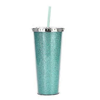 Gobelet en plastique réutilisable en gobelet d’eau froide de 700 ml, gobelet à boisson brillante à double couche avec couvercle et paille