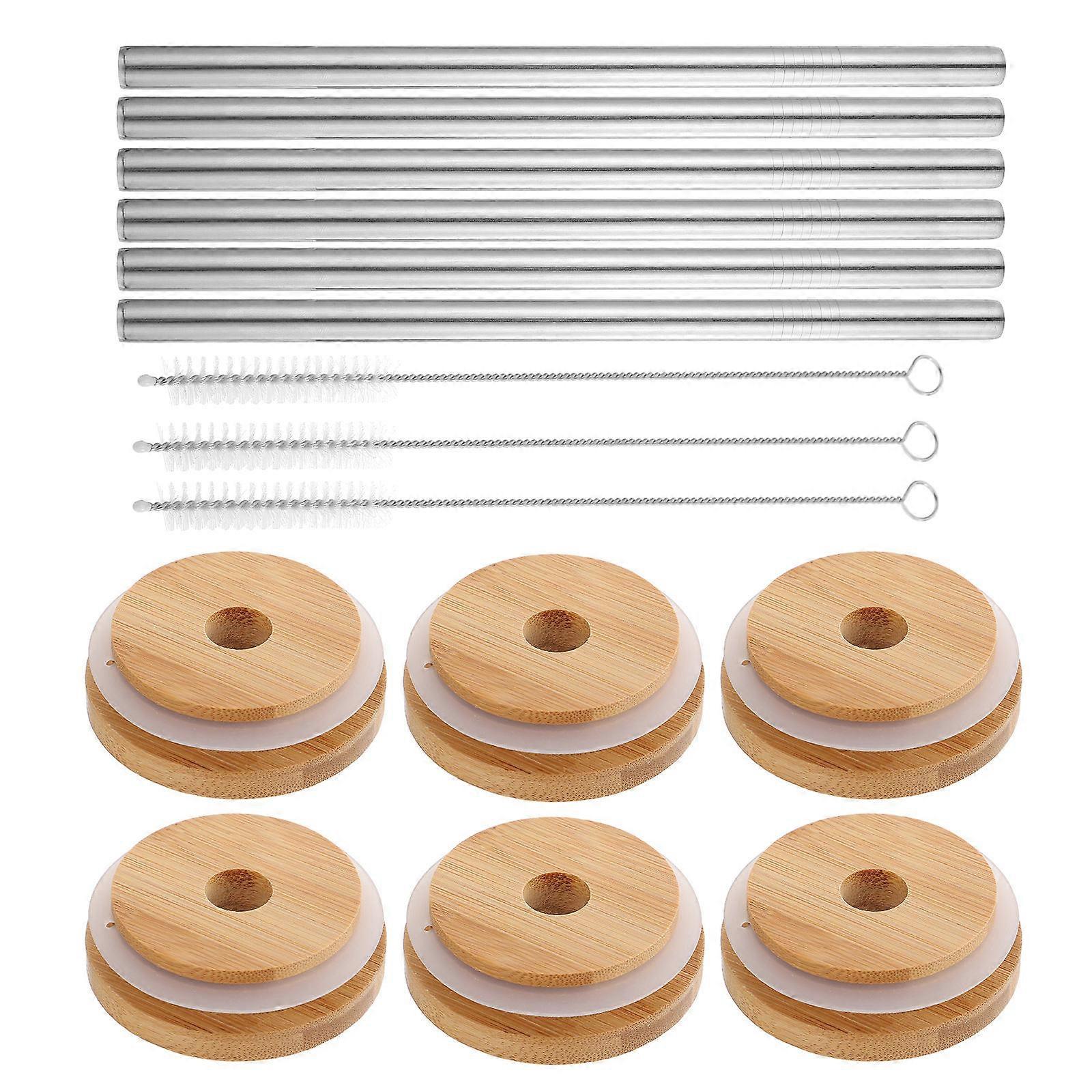 Tumbler Straw Lid Mason Jar Sealing Lids for Outdoor Use Wood 1Set