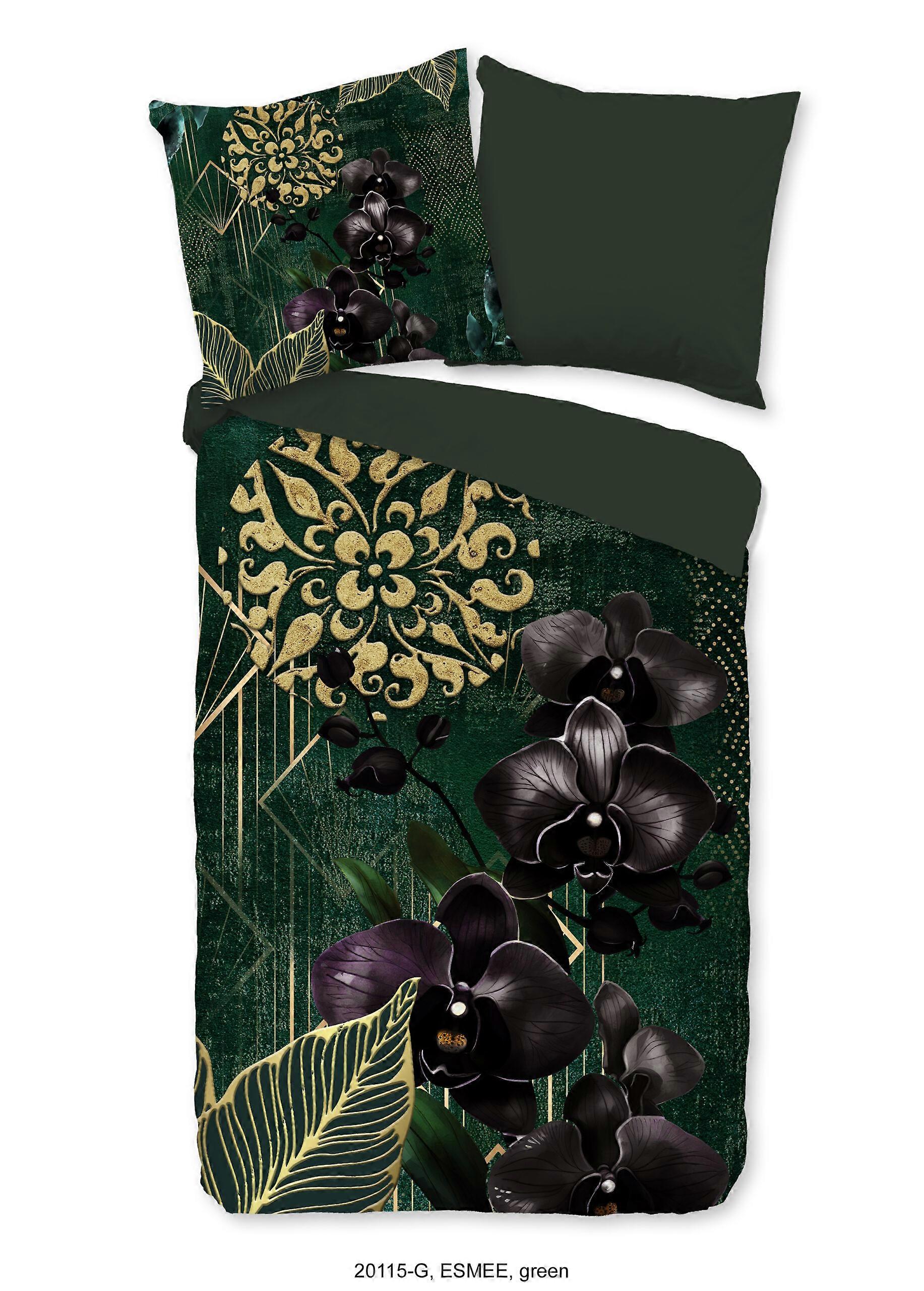 Good Morning Dekbedovertrek "orchideeen en gouden elementen" - Groen - (135x200 cm) - Katoen