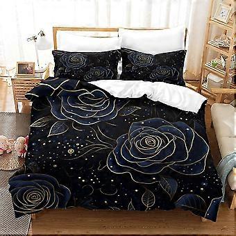 Gothic Art Bedding Set with 3D Printed Roses, Soft Microfiber, 2 Pillowcases, Hidden Zip