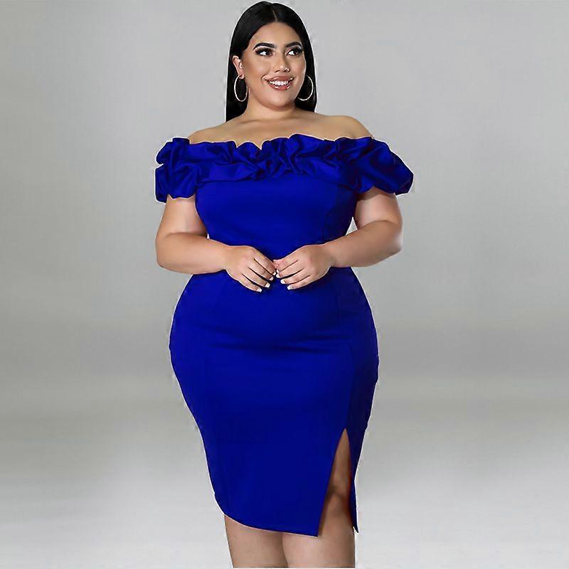 Plus Size Women's Fashion Ruffle Neckline Split Tight Hip Wrap Dress Dress