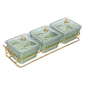 Green Divided Snack Tray with Lid for Home Use 3-Compartment Serving Plate