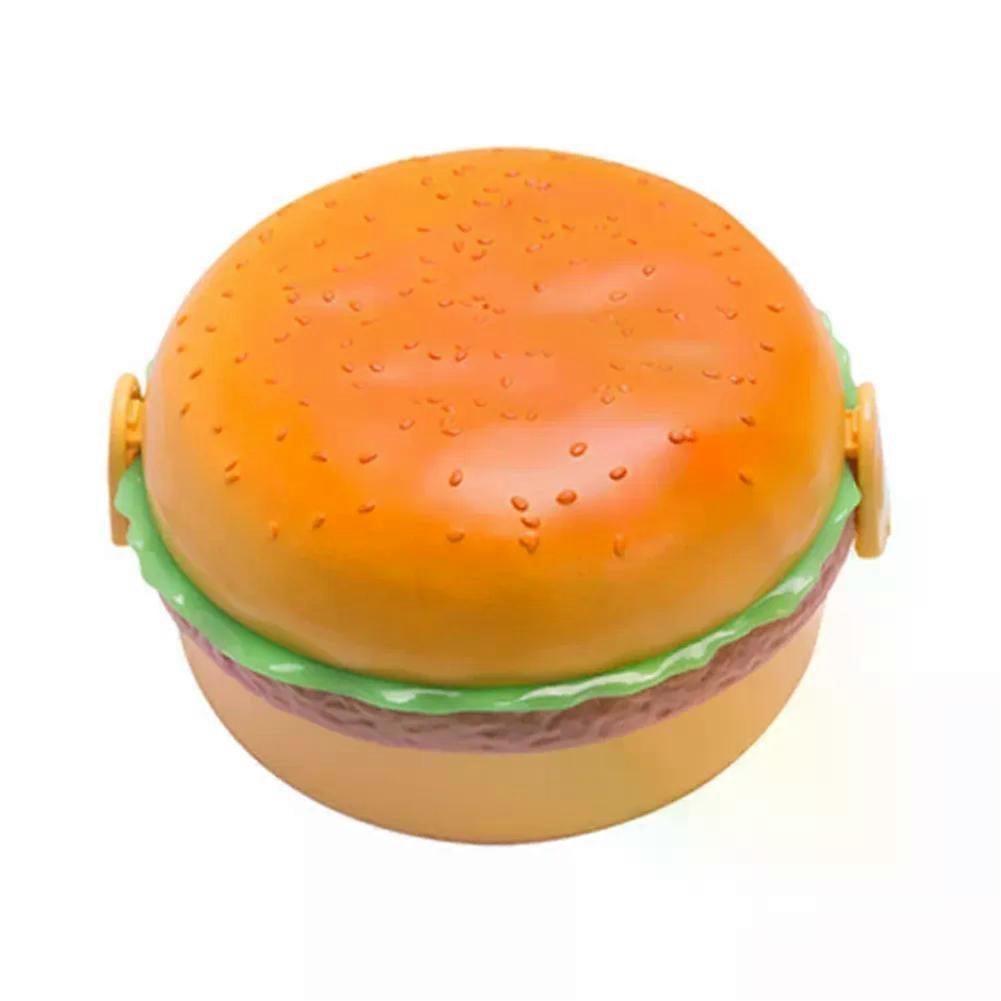 Hamburger Lunch Box Double Tier Cute Burger Bento Box Microwave Children School Food Container Fork Tableware Set