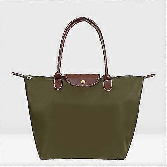 Sac à main classique pour femme, couleur vert armée, taille M (44 x 30 x 18 cm), en tissu Oxford uni, avec bandoulière en nylon, pliable et imperméable.