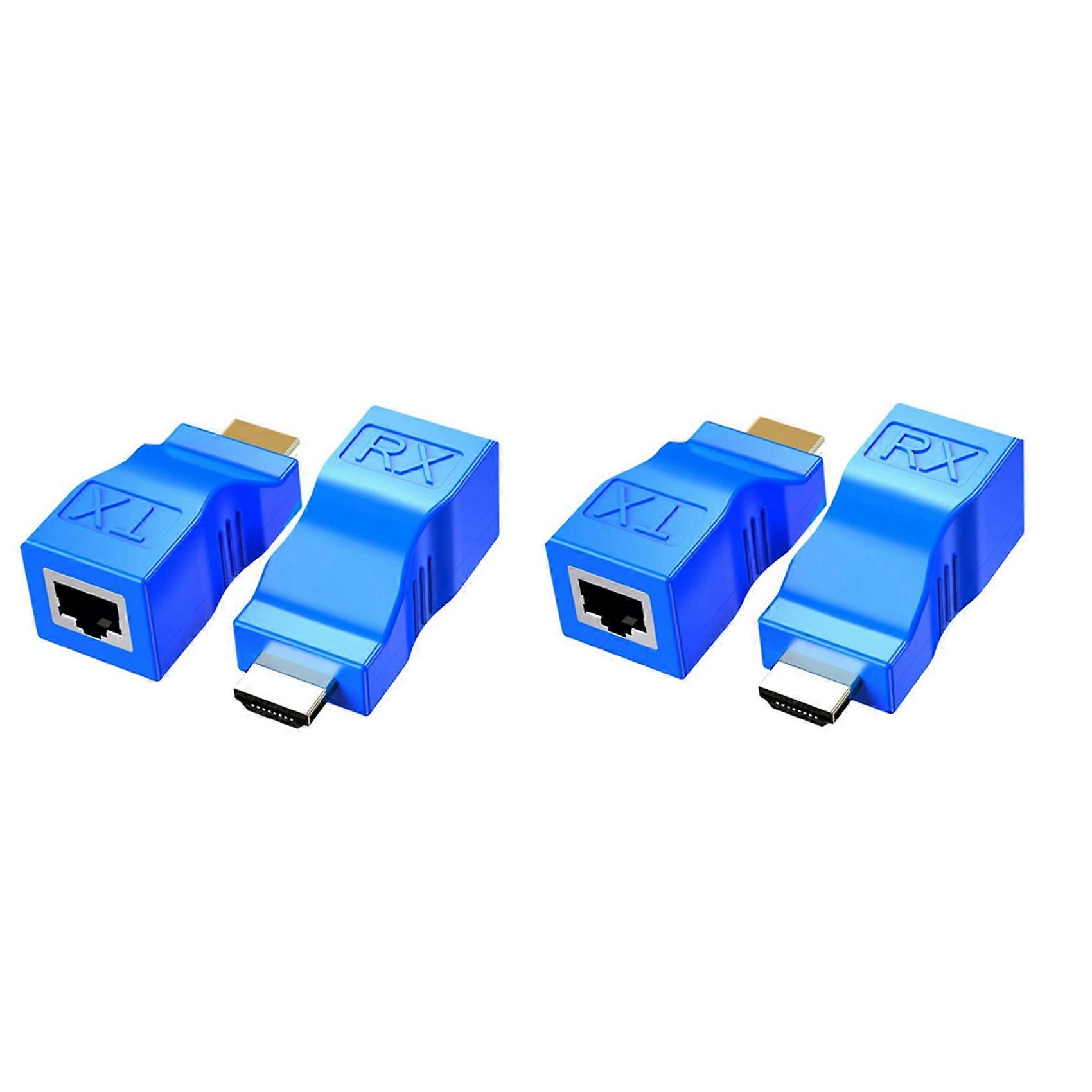 [HDMI Extender]The transmitter and receiver are used in pairs, without setting, without external power supply. This adapter not only breaks the limit of HDMI cable transmission length, but also provides greater flexibility and convenience in cable construction. [Widely Used]HDMI Extender is HDMI to RJ45 Extender Adapter works for HDTV, Set-top Boxes, DVD, HDPC, PS4, STB, HOME&Hotel Projector Data Monitoring Center, Large Conference Center. [High Efficient Transmission]The HDMI extender can extend HDMI video and audio signals simultaneously up to 30 meters/100ft by the CAT-5e/6 cables. High speed point to point output, ensures that the input and output is exactly same. [HD 1080P]The HDMI ethernet extender with 2.5Gpbs signal transmission speed, technology speaking can reach to 4k. Perfect support 1080P, but this section DOES NOT support HDCP. Support hot swapping. Plug and play. Colour: blue Material: ABS Size: 4x4cm Package Contents: 4 * Transmitter