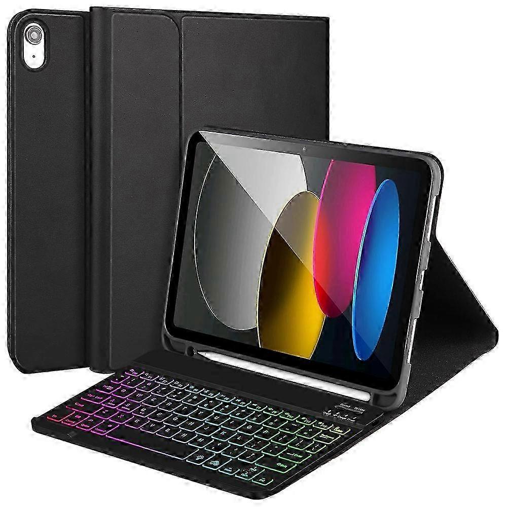 Leather Tablet Stand Cover with Three-Color Backlit Bluetooth Keyboard for Motorola 10.9-inch Devices (2022)