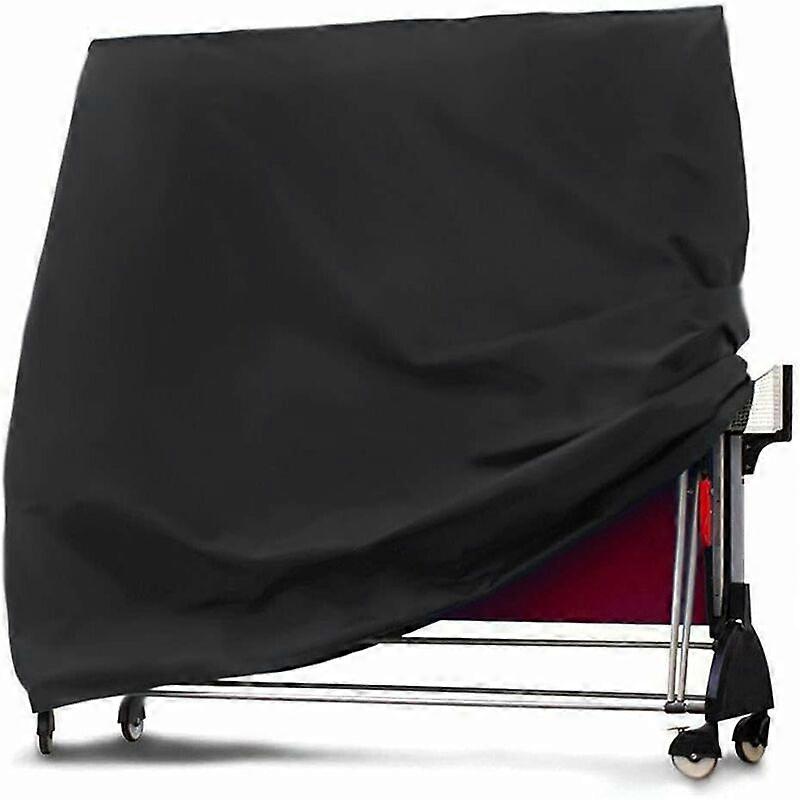 WIDE COMPATIBILITY: 165x70 x185cm (LxWxH). Check the dimensions of your furniture and equipment for proper fit. Universal design fits ping pong tables of different styles and brands WATERPROOF MATERIAL: Made from PVC lined Oxford fabric, this tennis cover Heavy-duty table is waterproof, UV-resistant, tear-resistant and fade-resistant, which can block storm, sandstorm, snowstorm and other bad weather, effectively preventing the table tennis table from getting wet and dirty. get dirty WINDPROOF, SECURE FIT: There are two adjustable straps on the table tennis cover. Which has been specially designed to hold the table tennis cover in place on the table, so that the table tennis cover is not blown away by the wind. keep the table clean and dry in harsh environments EASY CLEANING AND STORAGE: It is very easy to wash, just hose the cover with water and dry it in the sun. Foldable, small footprint Features: Size: 165 x 70 x 185 cm / 65 x 27.6 x 73 inch Product material: 210D Oxford , long service life and strong firmness Product weight: about 0.7 kg Shape: rectangle Color: black Package includes: 1 x Ping Pong Table Protective Cover Warm Tips: Clean water and dust regularly accumulated would help extend the life of the coverage